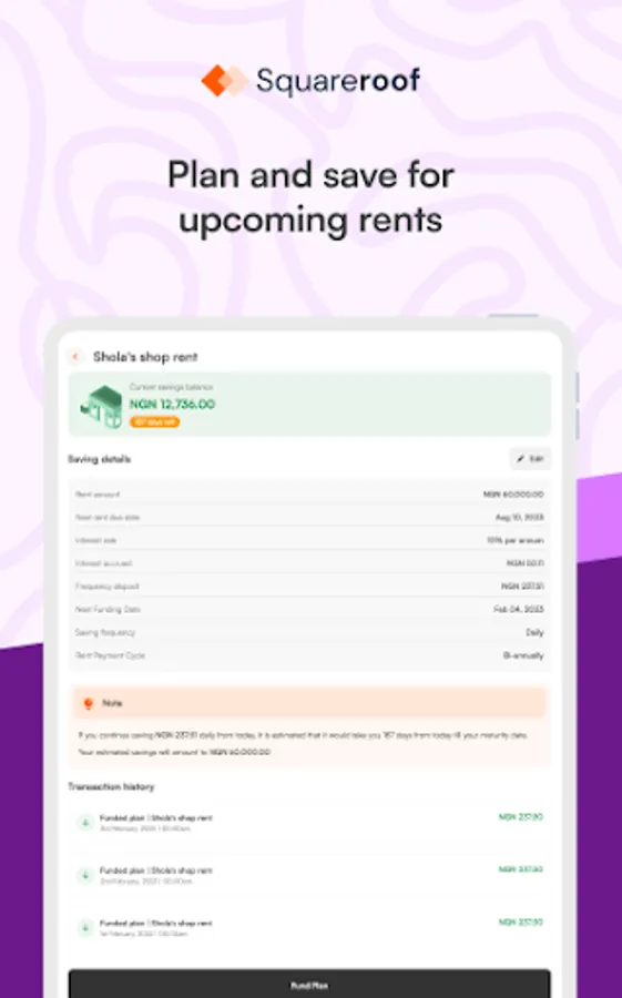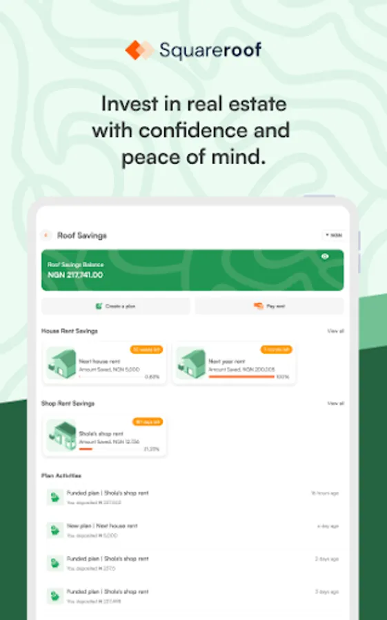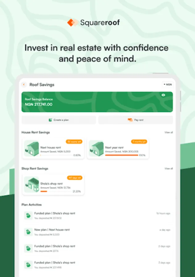 - Roof Savings: The easy and convenient way to plan and save for all your upcoming rent.