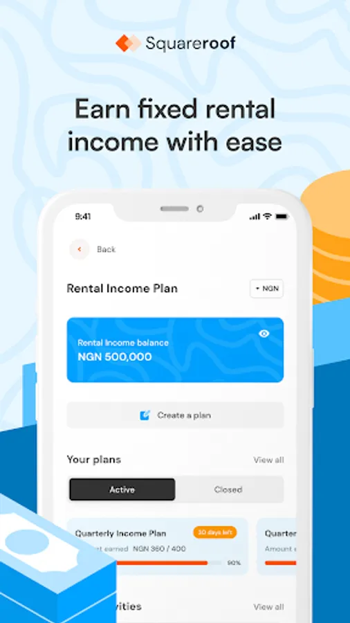 Earn passive rental income and manage your rent savings. Stay ahead of long-term plans with the simple and easy-to-use Squareroof App.