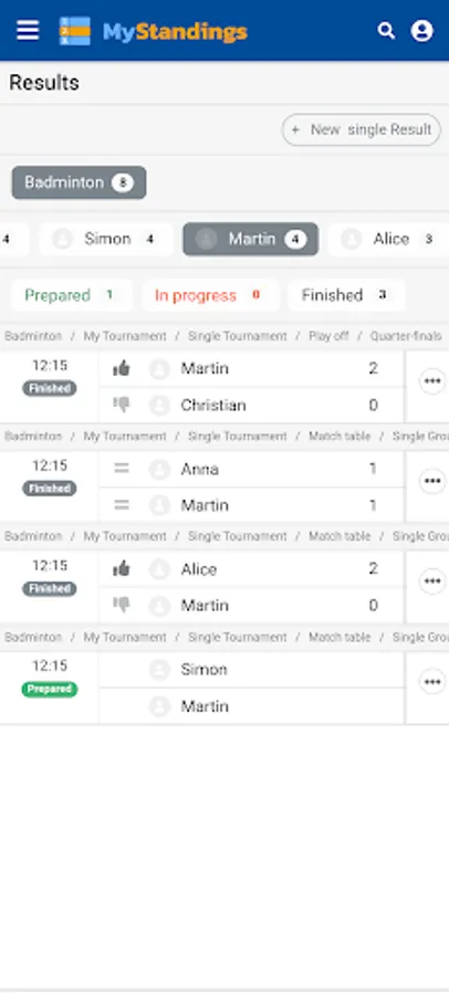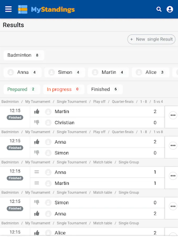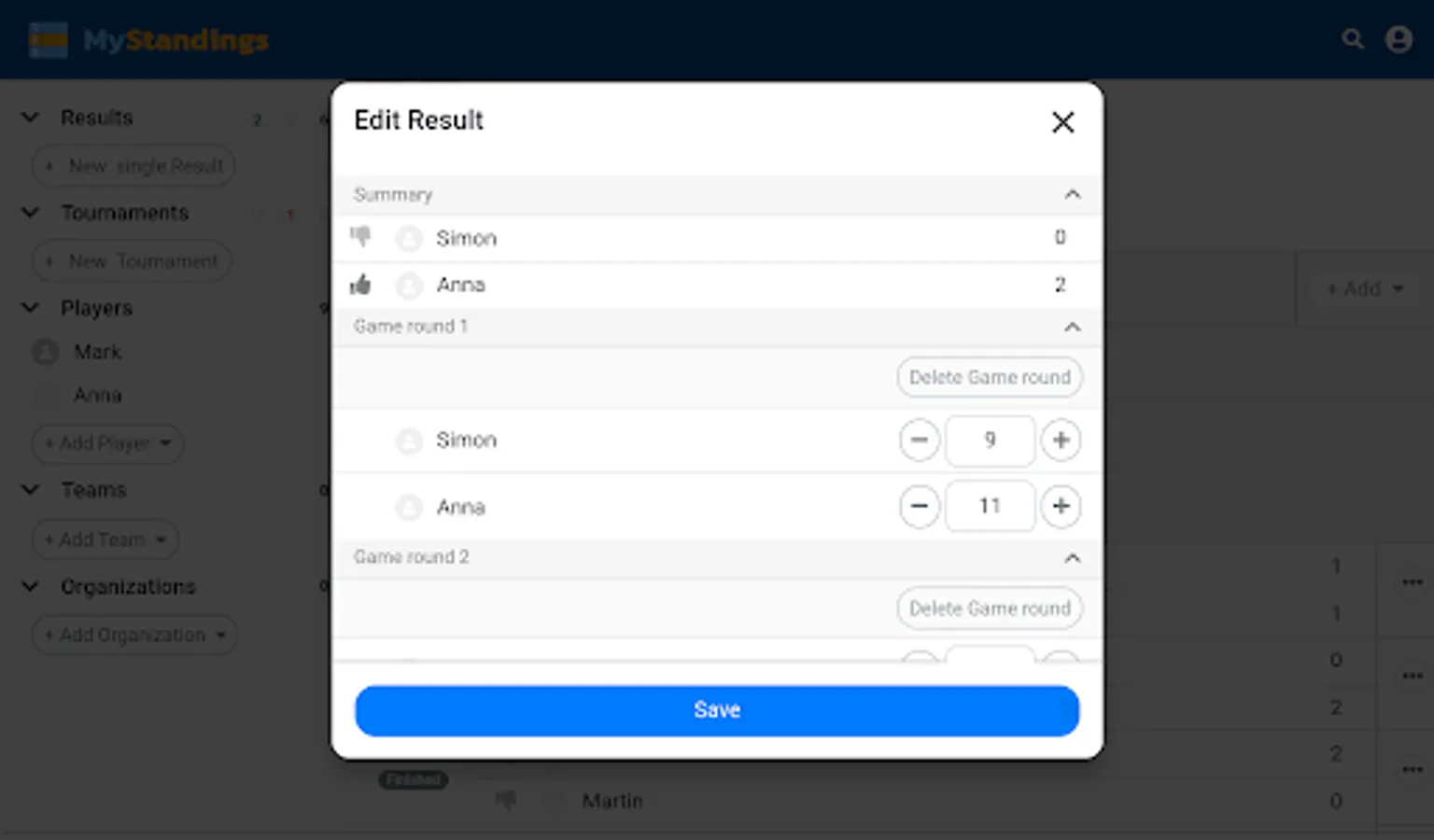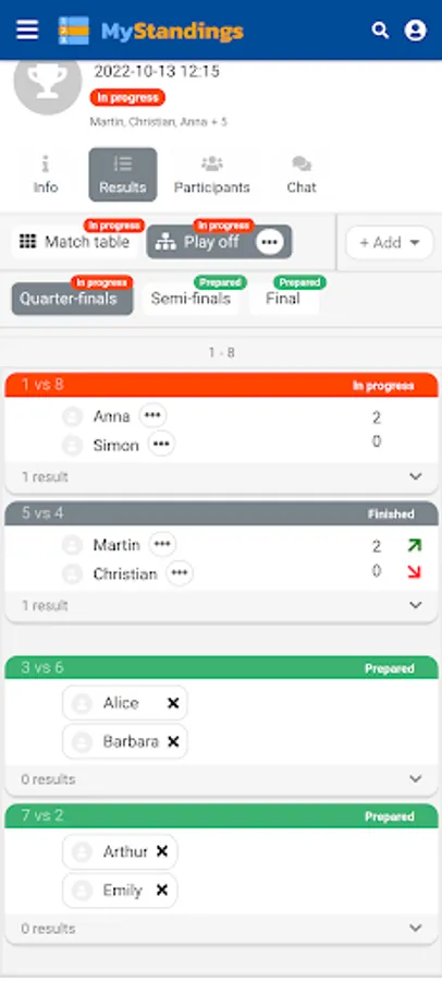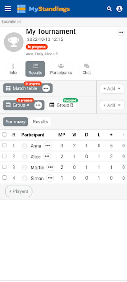 Create and organize your own tournament with friends, colleagues or classmates. A tournament can have multiple stages or seasons.