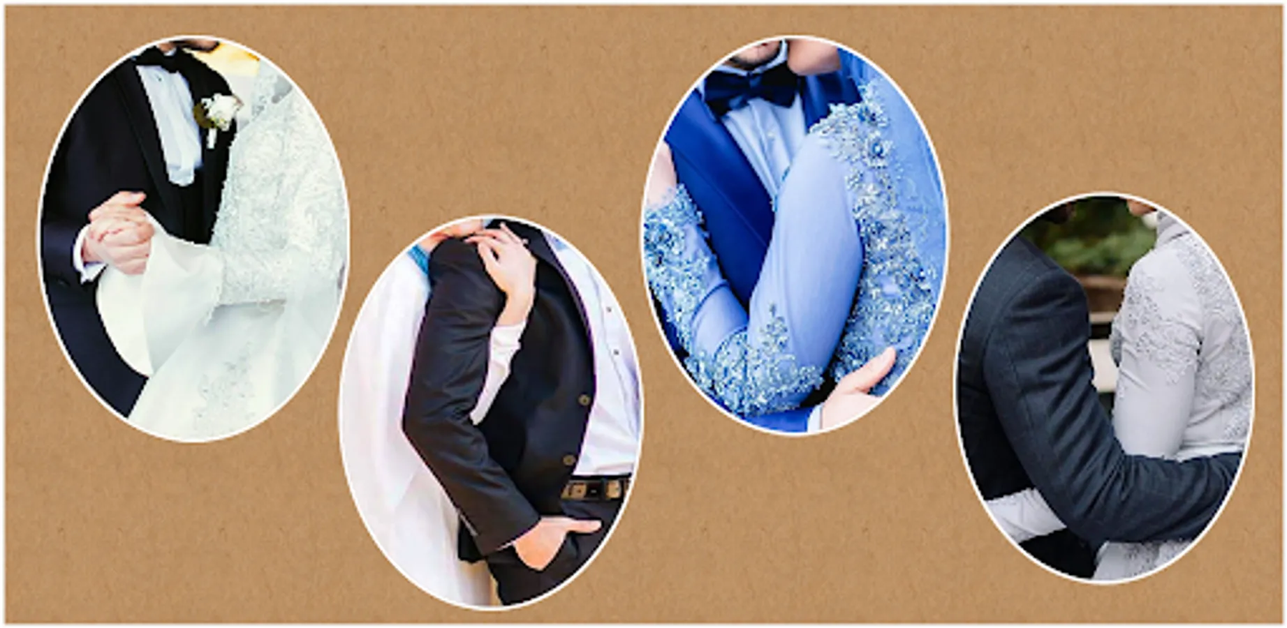 variety of photo frames Islamic couple with a variety of hijab styles and veil and men Muslim clothes.