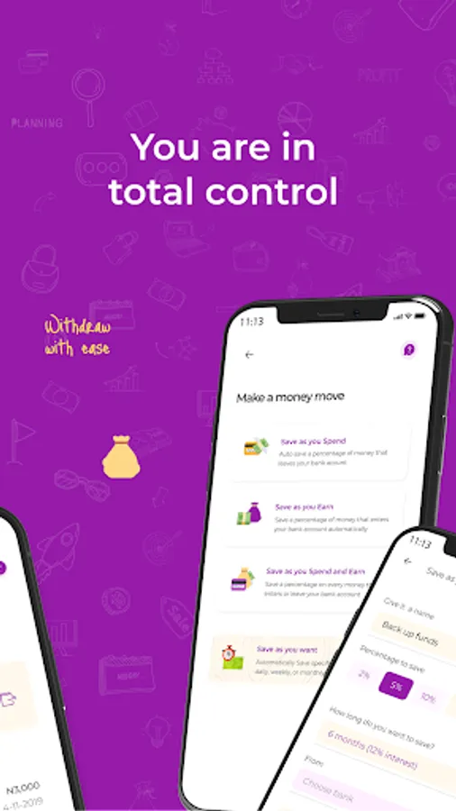 1. Sign up and create a money move. Specify what percentage of your spendings or earnings you would to save, and how long you would to save for.