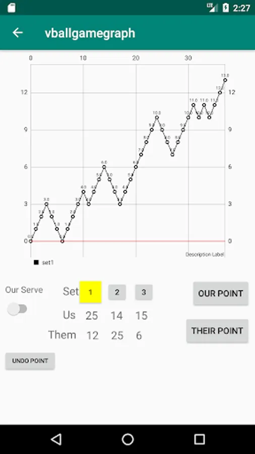 Track Serve for each Set . Visual Graph of the serves as they are entered. Shows Score