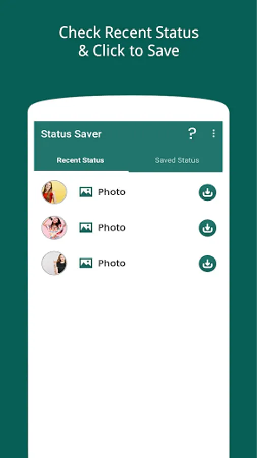 Status Saver for Whatsupp app let you download photo images, GIF, Video of new status feature of Whatsupp new App account also it allows to share right from app to your friends saver and editors status app.