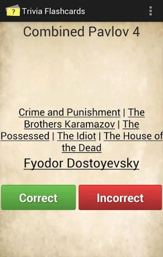 This app helps you study word/response combinations that come up frequently on quiz shows and other trivia competitions. Options are available to filter out the combinations you already know, or enable Wikipedia links to learn more about the terms.