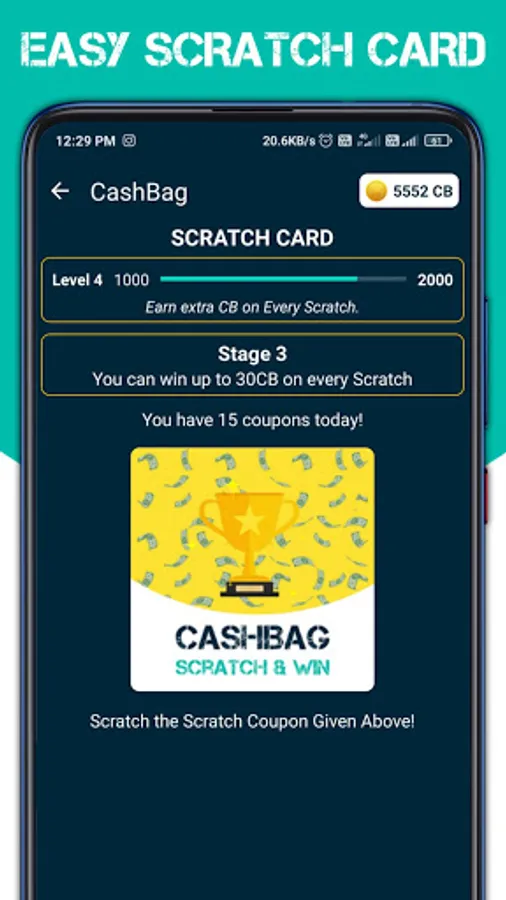 • You can win random rewards by scratch card. It's depend on luck and chance to win CB coin (In App Virtual Coin). This app is designed for Entertaining purpose. we will hope You will Enjoy or engaged with this app.