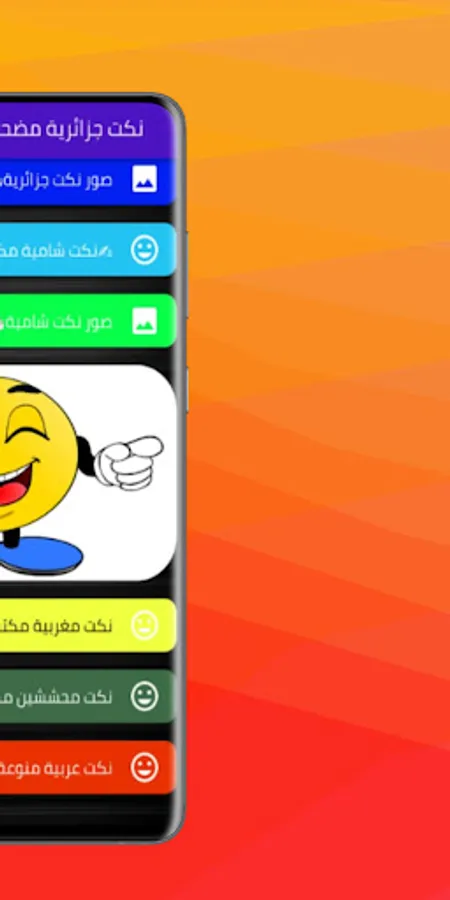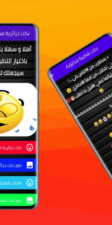 The application of very funny written Algerian jokes contains more than 1,000 written jokes and more than 700 jokes with pictures that make you laugh from your heart, and one of the advantages of the application of very funny written Algerian jokes is that it contains Algerian jokes, written Levantine jokes, written Moroccan jokes and pictures of many, many Of the funny jokes, and you can through the application of very funny Algerian jokes written to copy the joke that you like, and you can also download any image that you like