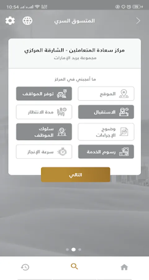 UAE Mystery Shopper application is available in 8 languages; namely, Arabic, English, Urdu, Hindi, Spanish, Chinese, French and Russian, to cater to the needs of customers from different nationalities in United Arab Emirates. Users can evaluate the overall experience at the service center and rate the various aspects of their experience including the location, parking spaces, reception, waiting time, clear process, completion time, service fees, payment method and employee attitude.