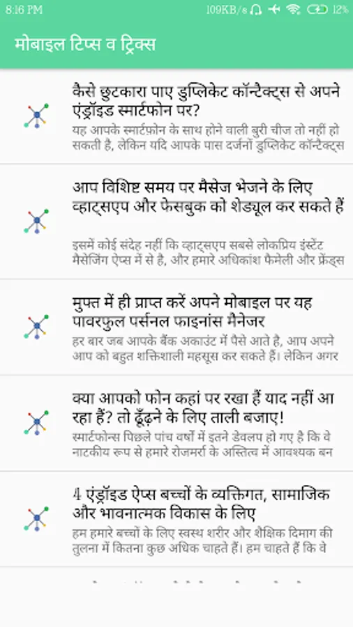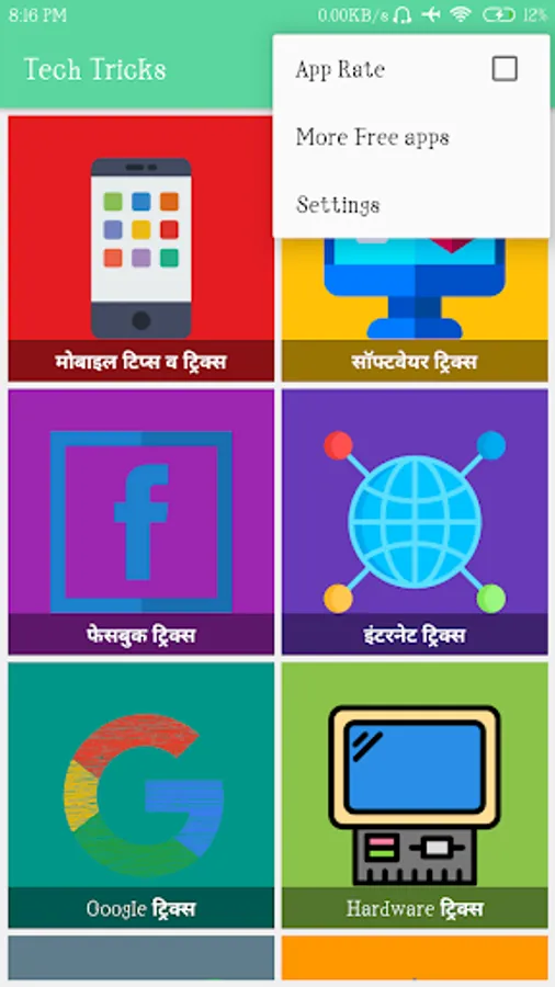 हिंदी में टेक्नोलॉजी टिप्स एंड ट्रिक्स ऐप को श्रेणियों में सारांशित किया गया है