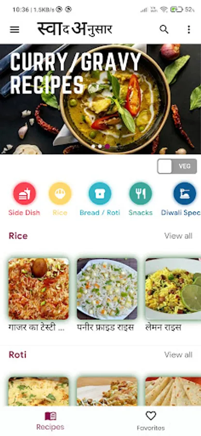 Swaad Anusaar App (Hindi Recipes) provides you the collection of best and various types of Indian Recipes and cooking tips In Hindi Language.