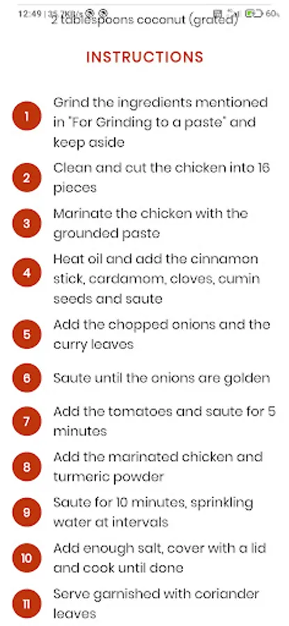 3. List of ingredients with cooking instructions for each recipe for you to see and cook.