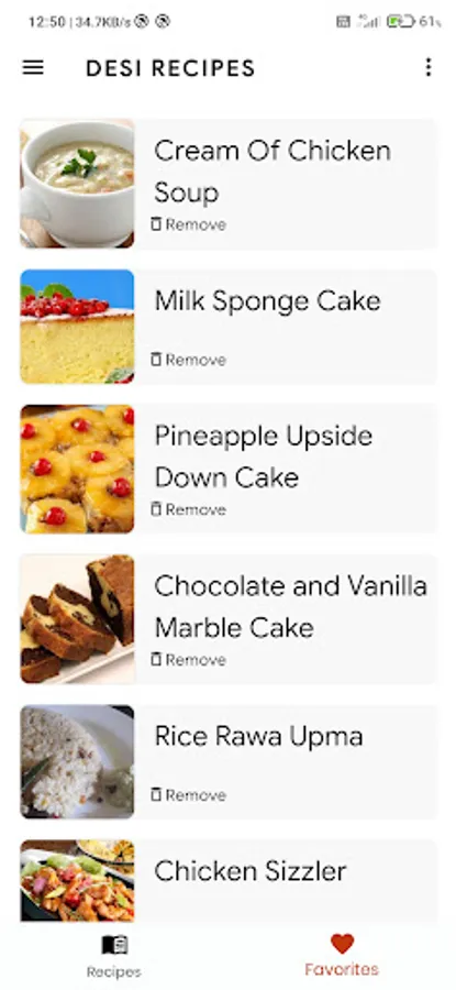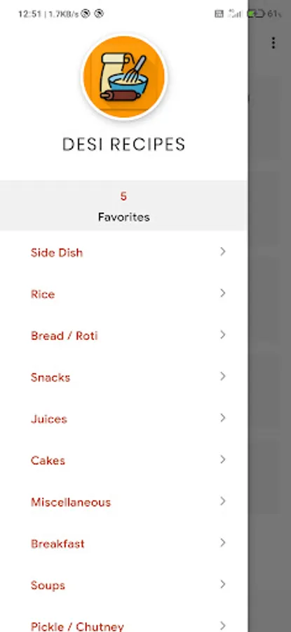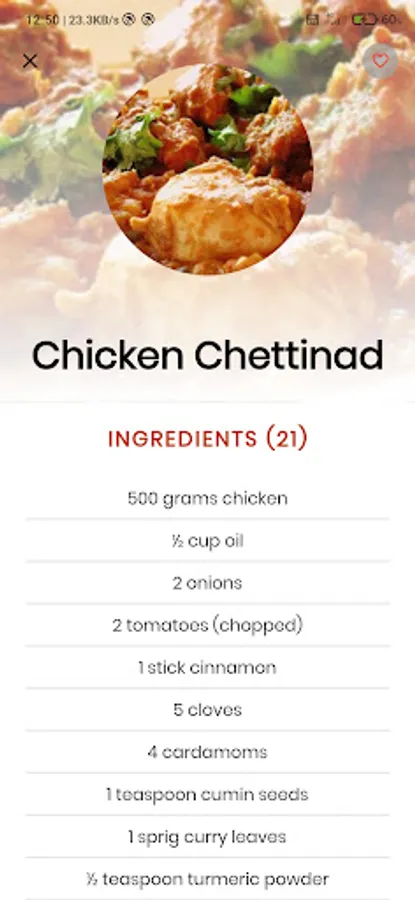 - You can favourite the recipes in favourites list to cook later or to have a glimpse while cooking.