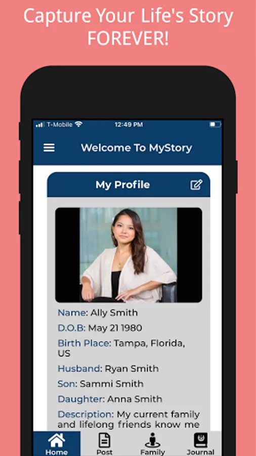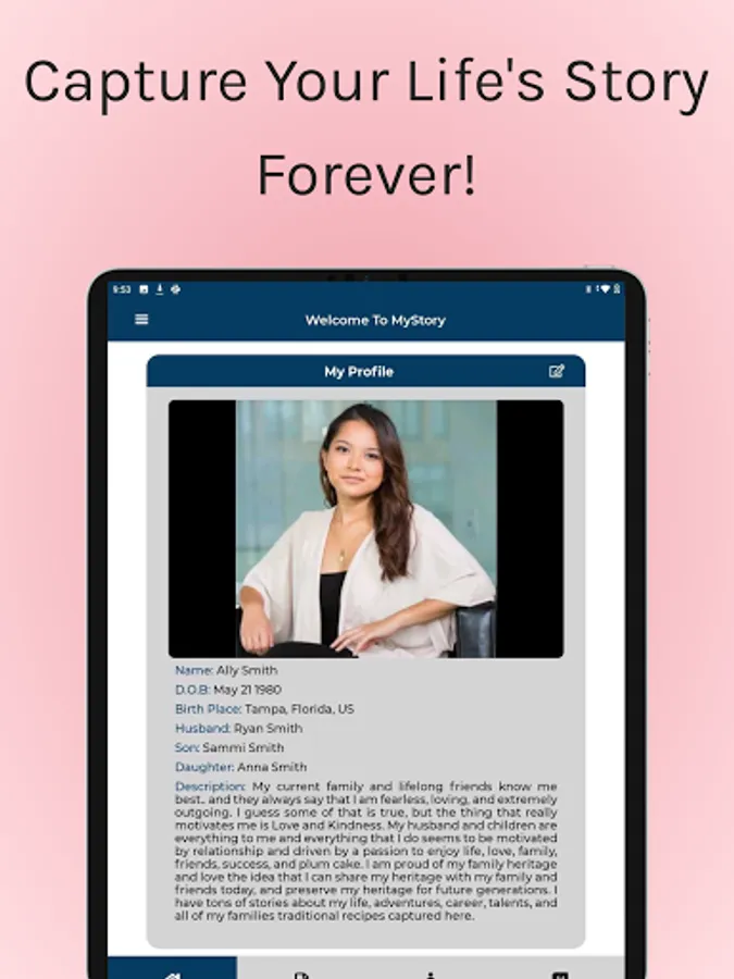MyStory is the first social platform designed to enable everyone to easily capture their life story and share it with family, friends, and future generations - forever. Our platform utilizes enhanced security features, and our privacy policy centers on never selling your personal data. MyStory is simple, safe, & secure.