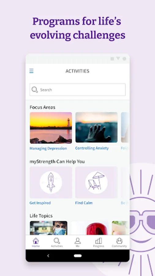 • Guided programs, in-the-moment coping tools, and inspirational content to support your ongoing mental well-being