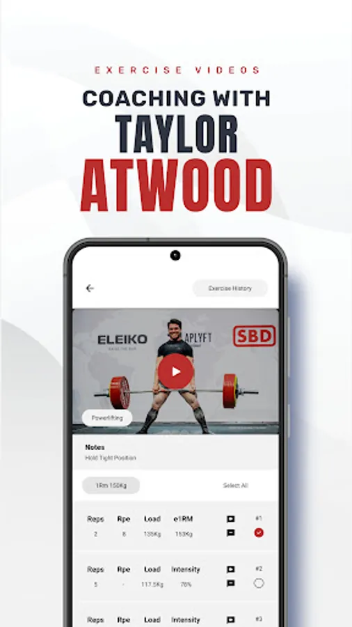 The app is designed by 3x World Champion Powerlifter & All-Time World Record Holder Taylor Atwood, and his Coach, Jason Tremblay.