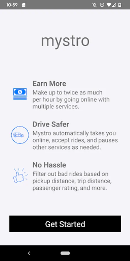 Mystro helps rideshare drivers, like Uber partners, drive smarter by auto-switching between rideshare apps, accepting only the trips they want, like long trips to the airport, and eliminating unprofitable trips like Uber Pool or Lyft Shared.