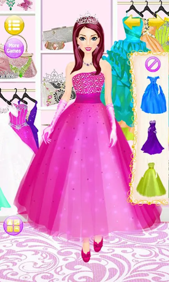 Prince Charming is close to the castle! Hurry, get the princesses ready to meet him! The girls are in their rooms getting ready to meet the prince, but they have to look their best before they leave the castle! Help them look like beauty queens in this charming royal story of dress up, hair design and spa treatments!