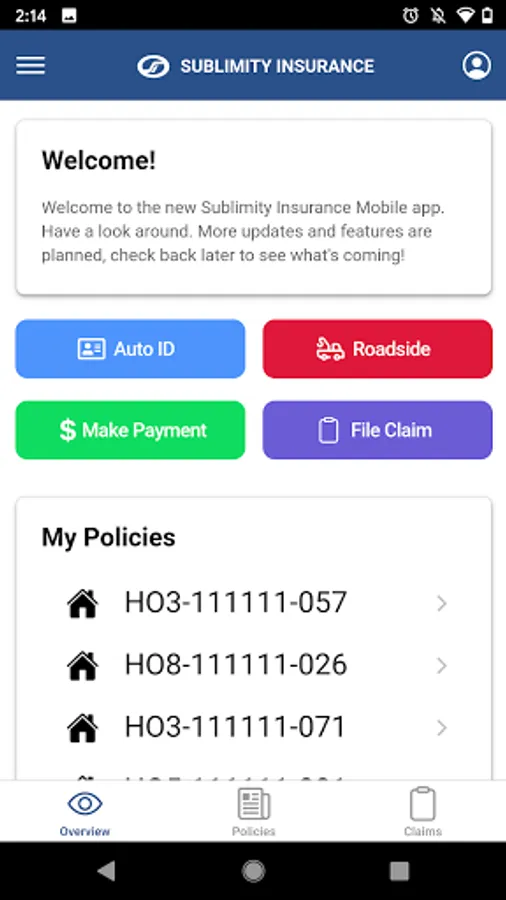 The Sublimity Insurance Mobile app allows Insureds access to Insurance information while on the go.