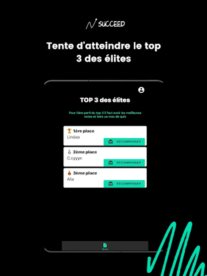 Discover the TOP 3 elites. To be part of the top 3 you have to have the best grades and do a lot of quizzes.
