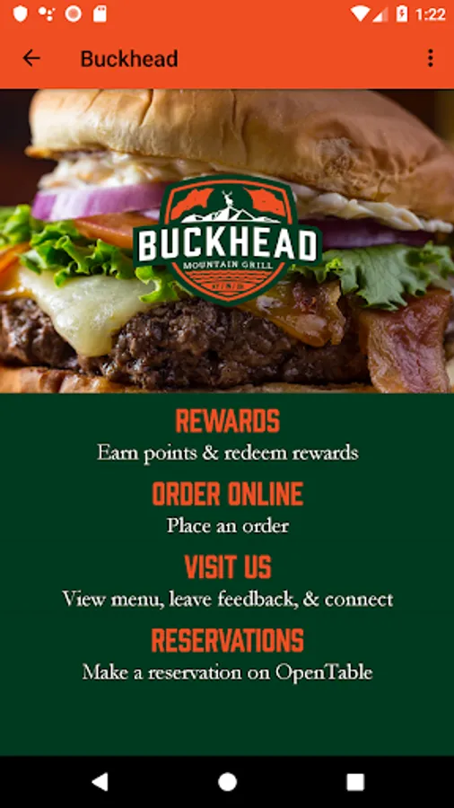 With the Buckhead Mountain Grill app you can view current wait times and join the call ahead list, earn points, redeem rewards, and much more!