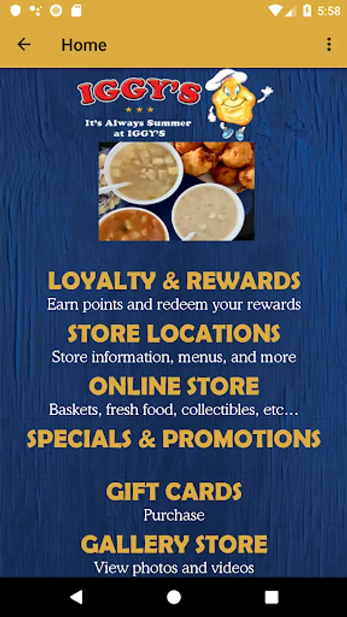 With the Iggy's Doughboys & Chowder House app you can earn points, redeem rewards, view specials & menus, and much more!