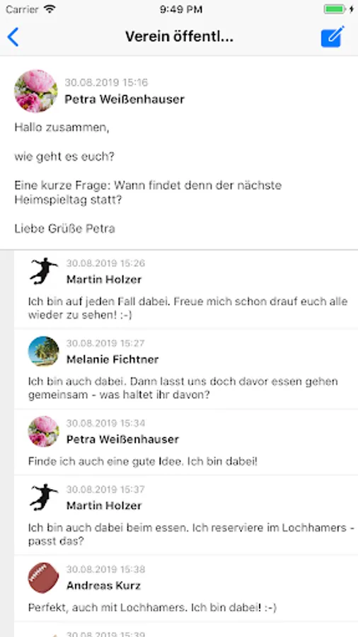 In external groups also parents and fans can join in the discussion. Plant celebrations, rides or training camps and counts on the support of parents and fans.