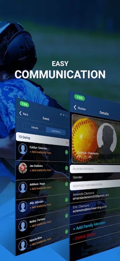 Availability - Players can let you know from within the app if they’re coming to the game, practice, or event.