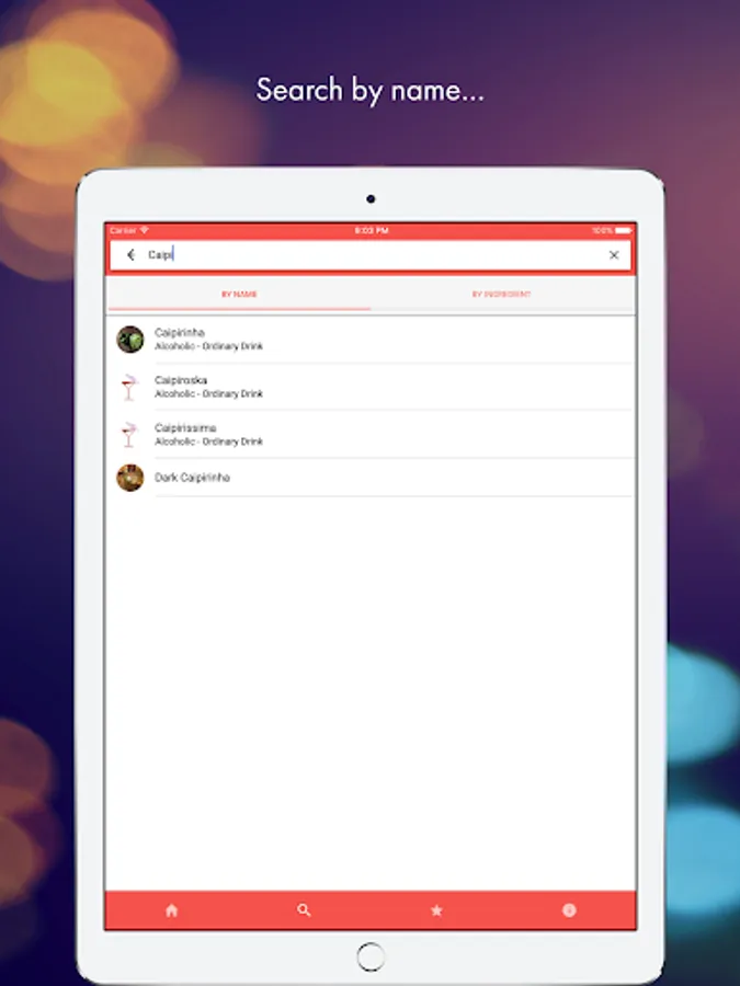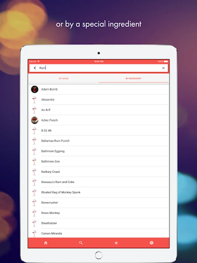 Search over 3100 cocktail recipes by name or a special ingredient like Vodka or Soda Water.