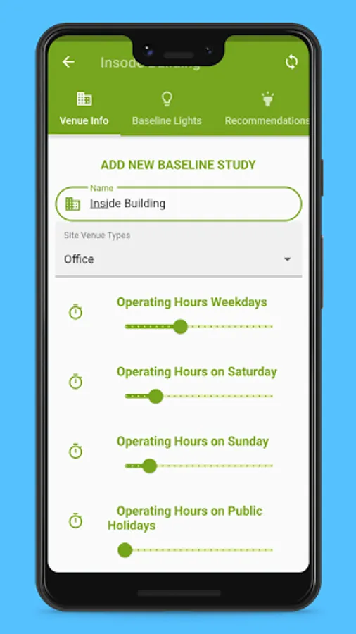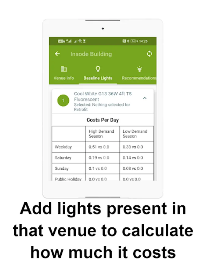 It is very important to note that the tool or app will not consider compliance to electrical and lighting statutory regulations and standards. It is only to be used as a cost saving indicator. Consultation with a lighting consultant is required to review and verify the actual savings that can be obtained as well as to ensure compliance with relevant health and safety standards