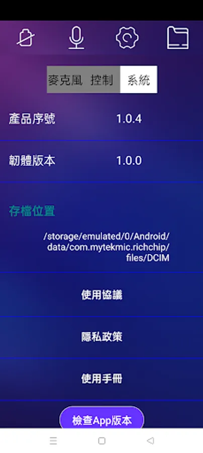 This APP is mainly used with RC100 device, which can make users more handy. The main functions include turning on or off various control options, changing usage functions and product updates, etc.