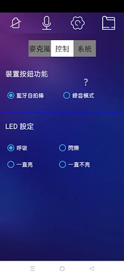 3. Modify recording or control options, such as gain, button and LED settings, etc.