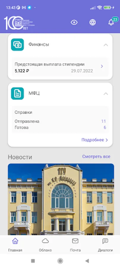 - Work with the electronic catalog of literature of the university and receive up-to-date information on debts for the literature taken;