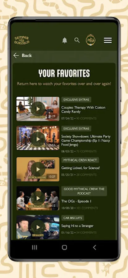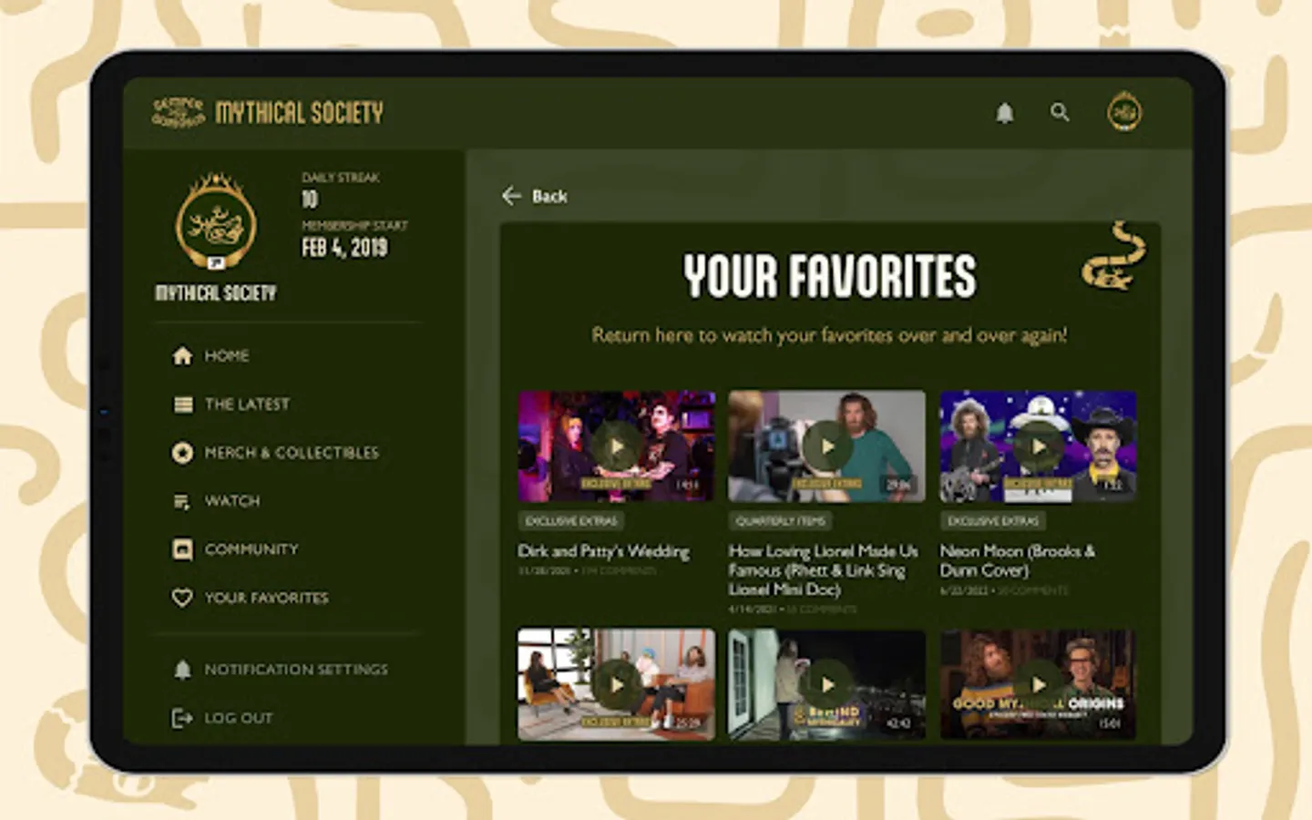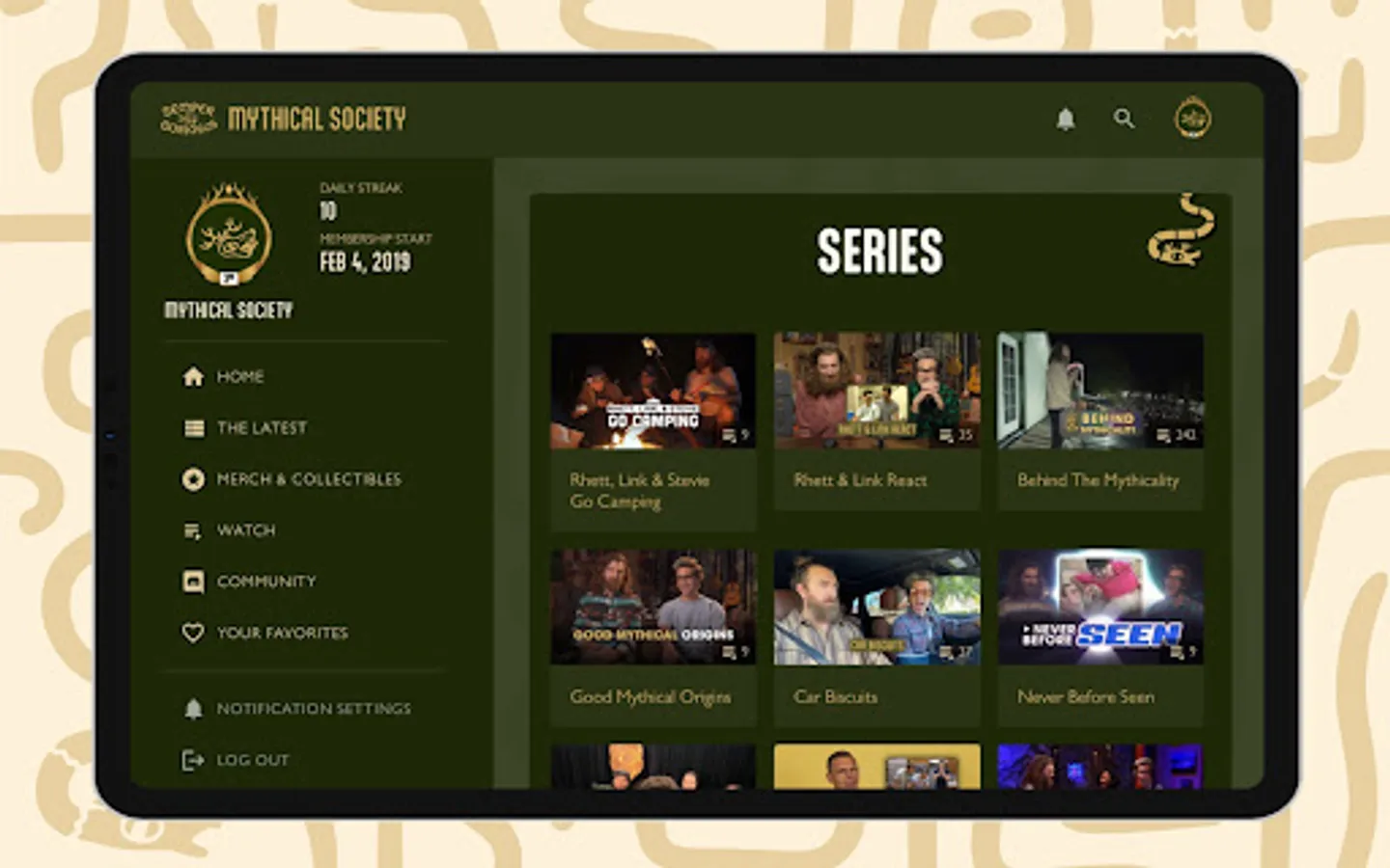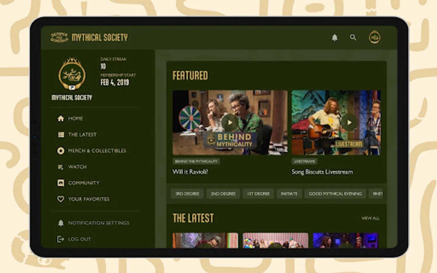 Enjoy the perks of the new Mythical Society App! Members can watch and cast their favorite content, search our vast video library including filtering by Degree access, and customize their experience by adding favorites. Creating, editing, and deleting comments is streamlined, notifications are much improved & relevant, and members can compete with app visitation stats!