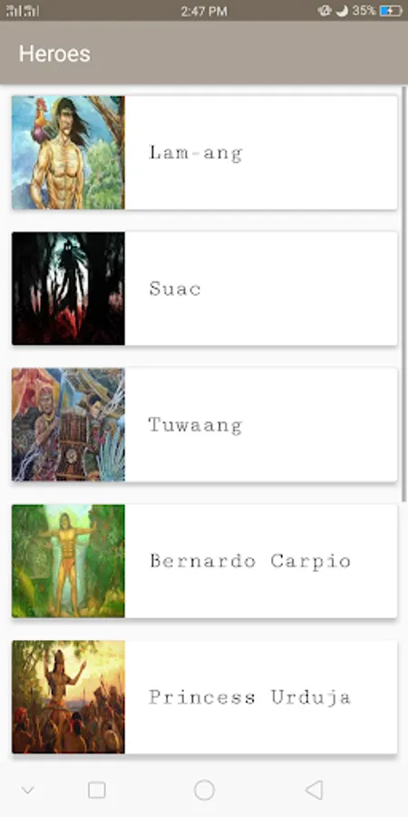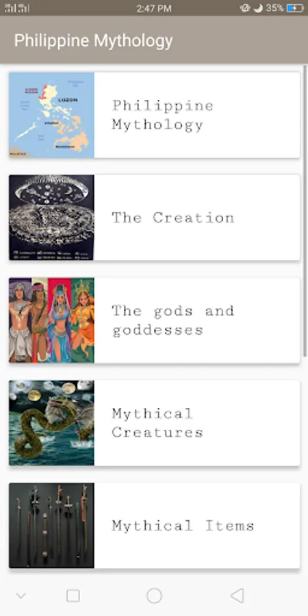 of the creation, the different pantheons in Philippine mythology, mythical creatures and items, heroes, and more. Enjoy the app! :)