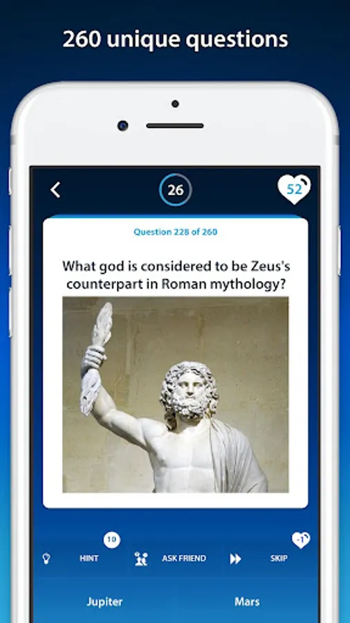 Rush to the mythology quiz battle, use the power of immortals and command the GODS AND GODDESSES OF ROMAN, NORSE AND GREEK MYTHOLOGY! GET THIS MYTHOLOGY QUIZ GAME NOW!