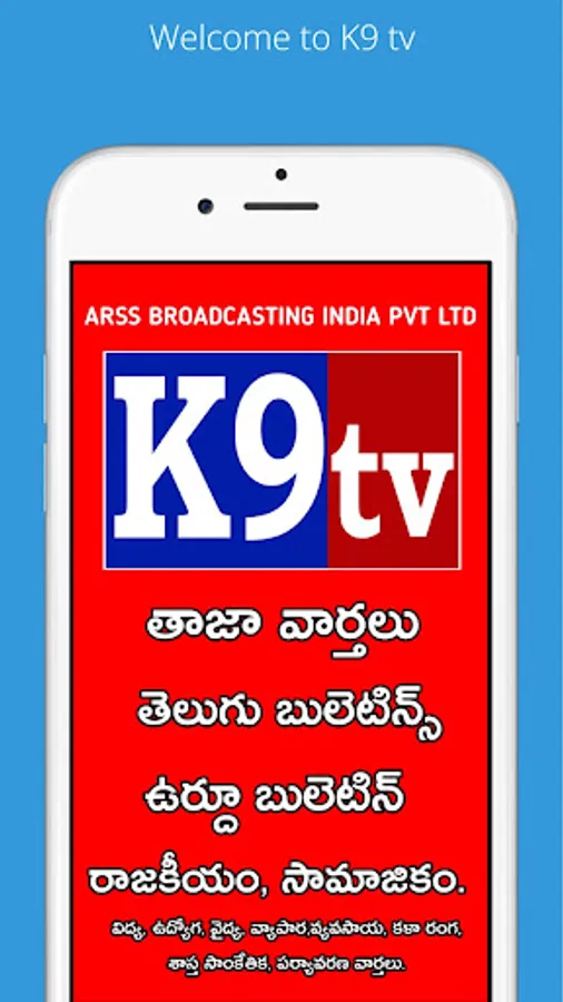 K9 tv is a leading Telugu Tv channel that provides it's viewers the complete picture of news that is relevant and presented in a vivid and insightful manner. The channel brings forward information as it takes place in the world. K9 tv operates out of Andhra Pradesh & Telangana with network channels in All over India. It is the one-stop destination for trusted World, Indian and Telugu Regional news. Innovative news coverage has made K9 tv the most watched, credible and respected news network in India. In South India, K9 tv has been at the forefront of every news revolution.