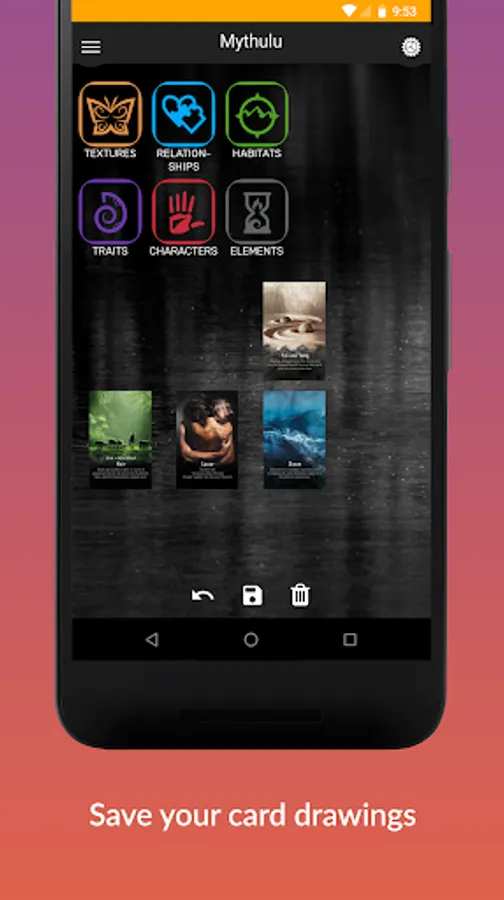 This app is the mobile version of Mythulu’s physical Creation Cards.