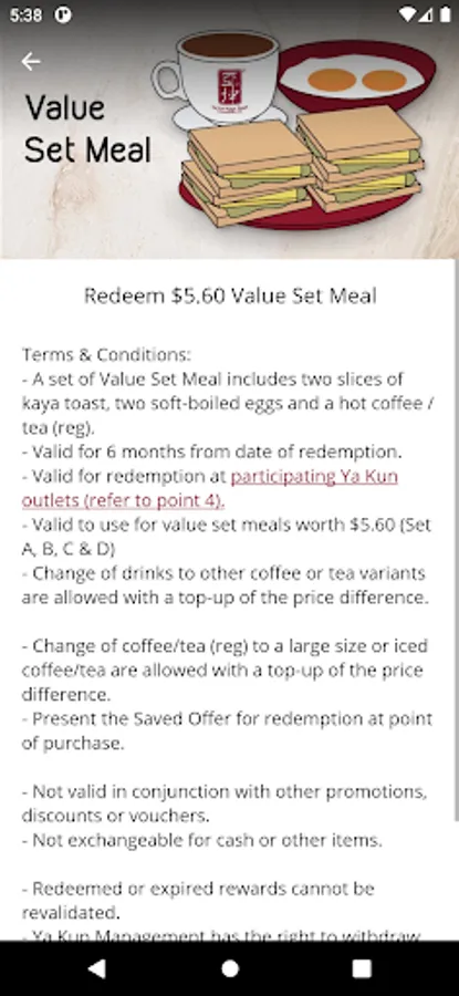 • With the Ya Kun app, simply order at participating Ya Kun outlets and pay directly with the Ya Kun app. You get to earn points and redeem an array of exciting rewards.