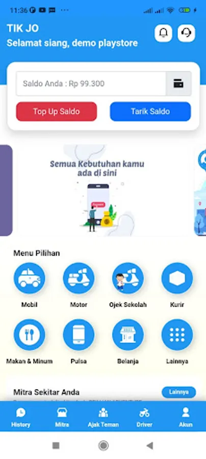 TIK JO is an online motorcycle taxi application and food delivery and other services, to serve the community to make activities easier.