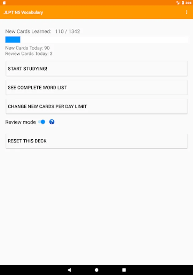 1) Set the number of new flashcards you want to see each day (from 1 up to 500). Study faster or slower...whatever works for you and your schedule.