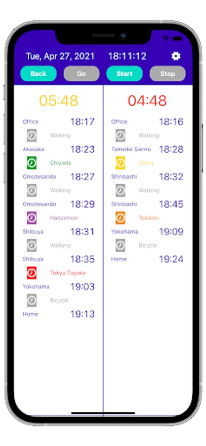 - You can resister timetables for both weekdays and weekends(*1) and switch between them.