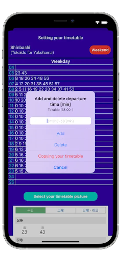 3-1) Tap the each entry field of time , and enter the departure minute and tap "Register". The departure time will be added to the entry field.