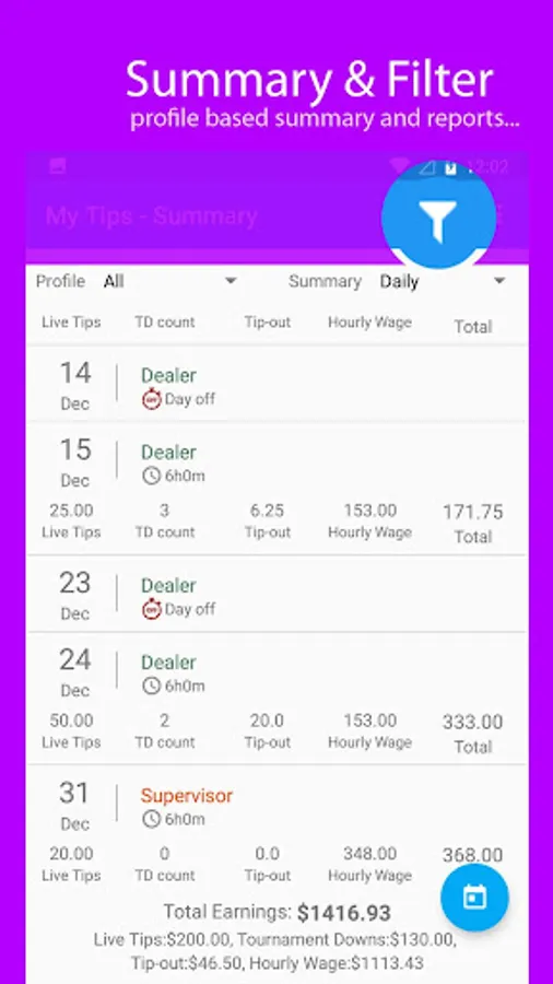 Also, My Tips Ledger has exclusive features and capabilities for casino employees. Dealers can calculate tournament downs, multiple profiles for Dual-Rate employees with different pay grades, and much more.