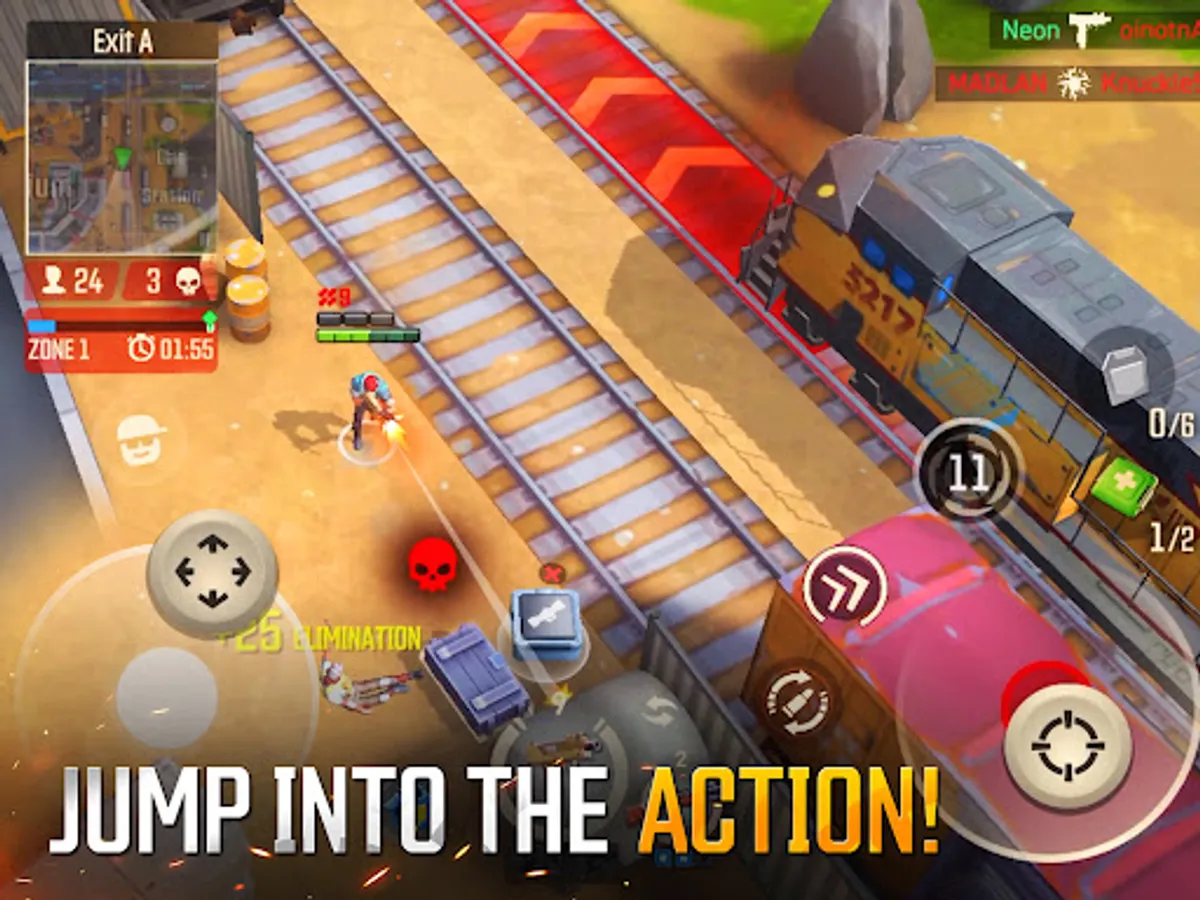 Run and shoot with sticks. A comfortable interface for all in-game actions: rolls, reloading and changing weapons — anyone can work it out!