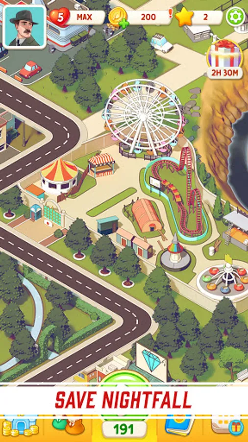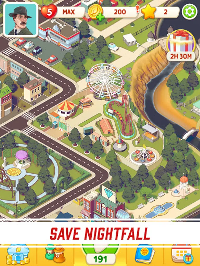 Escape your everyday life, make the journey to Nightfall, and set your detective mind to investigate all the mysteries! Collect clues and solve criminal cases, murders, and mystical puzzles. Complete match 3 levels and examine the crimes and secrets of Nightfall from all sides! But watch out: this hidden small town is not what it seems