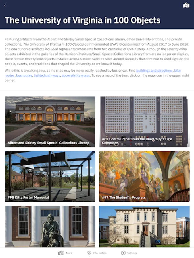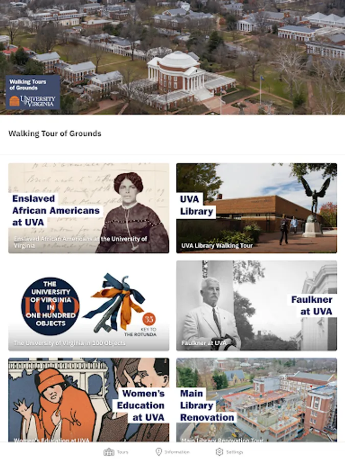 Walking Tours of Grounds, a set of thematically-driven walking tours allow you explore one of the most beautiful and prestigious universities in the world: the University of Virginia. Walk the path of celebrated author William Faulkner, UVA's writer-in-residence from 1957-1958, from his offices to speaking engagements and classes around Grounds, or celebrate UVA's Bicentennial by finding the 100 objects around Grounds that symbolize the University’s history commitment to intellectual inquiry, documenting institutional crises, everyday life, and UVA’s place in the Charlottesville community and beyond.