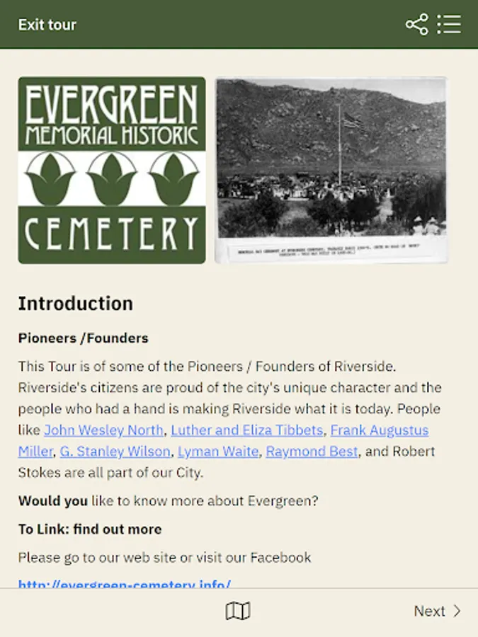 The Tours includes History, information, and Videos of the Historic Evergreen Cemetery, the oldest in the City of Riverside.