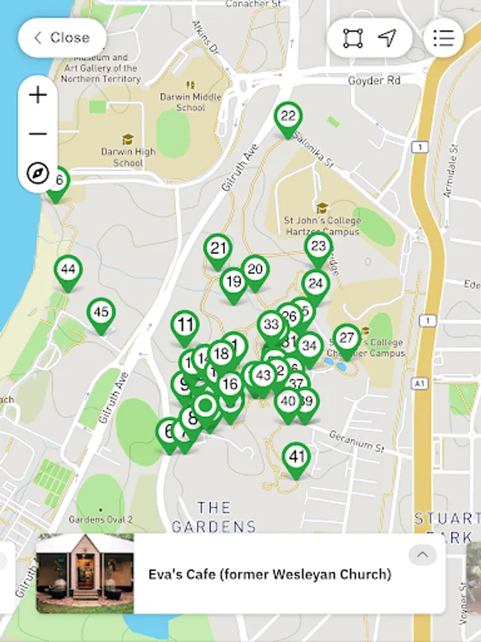 Geranium Street Entrance, Is located at the top of the Gardens and is in close proximity to the Cycad Garden Snake Bean Community Garden and Holtze Lawn.