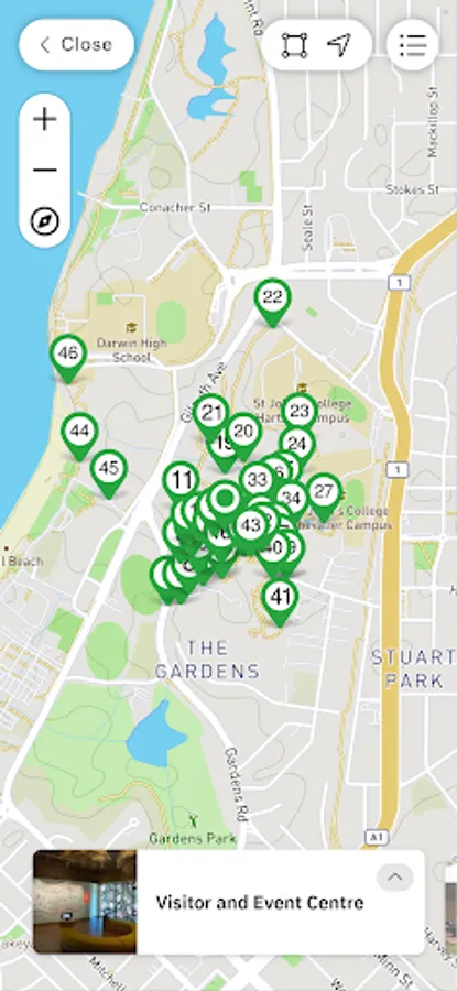 The George Brown Darwin Botanic Gardens (The Gardens) extend over 42 hectares from the escarpment to the sea.
