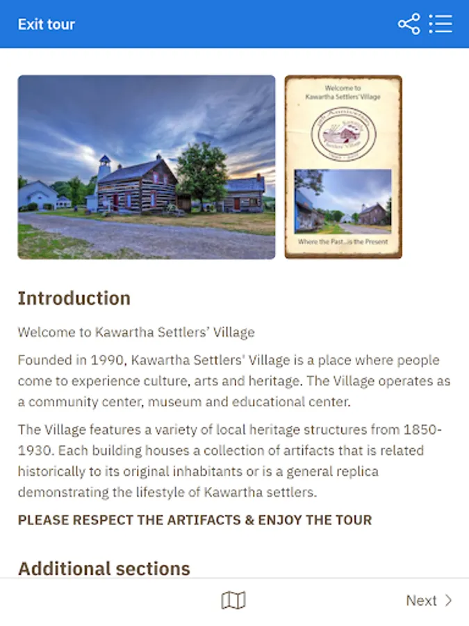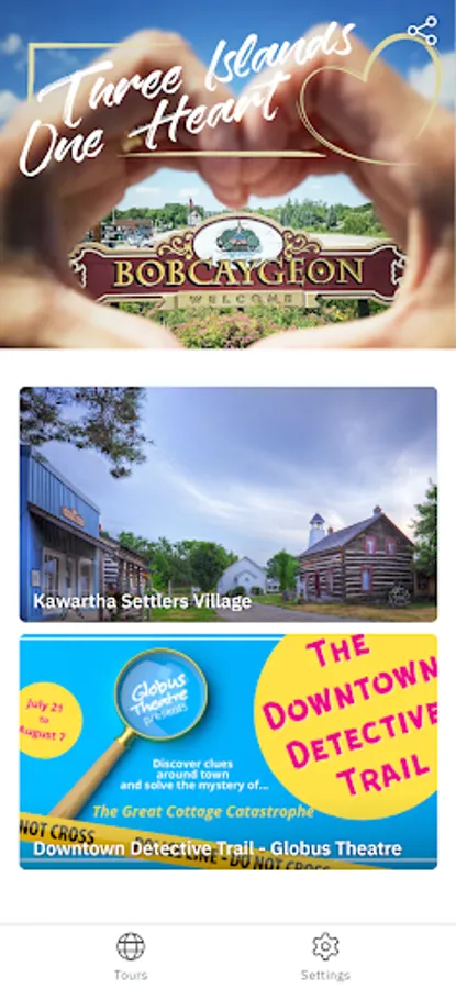 Steeped in history, and century-old buildings, side-by-side with modern updates and an eclectic mix of shops and restaurants, Bobcaygeon welcomes you. This app will allow you to locate a variety of trails, routes (on land and in water) and attractions and can be used by both visiting tourists and residents in the beautiful town of Bobcaygeon. Launched in 2020, with the Kawartha Settler's Village tour, additional tours will be added shortly. Watch for the heritage walking, water, and dining tours soon to be released for summer 2020.