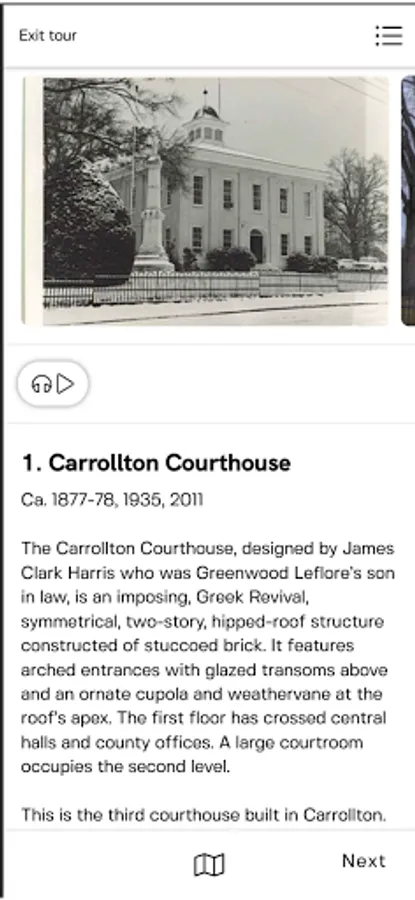 Carrollton is a remarkably complete and well preserved example of a prosperous, small, rural county seat and trading center. Retaining much of its turn of the century appearance, the town possesses one of the most significant and unaltered assemblages of pre twentieth century architecture in central Mississippi.